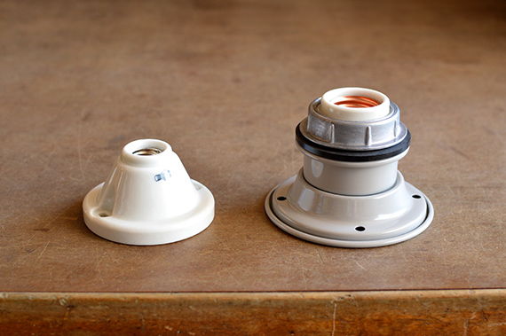 壁面や天井に直接取付けるタイプのソケット。インテリアに使用される電球は明るさが必要とされる場面が多く、E26規格のものを選択する場合がほとんど。ですが、E26の電球はそれ自体のサイズが大きいと思っていました。LED電球の普及などにより、近年では一回り小さいE17の規格でも充分明るい電球もあり、それに合わせた意匠性の高いソケットの必要性を感じ製作に取り掛かりました。
