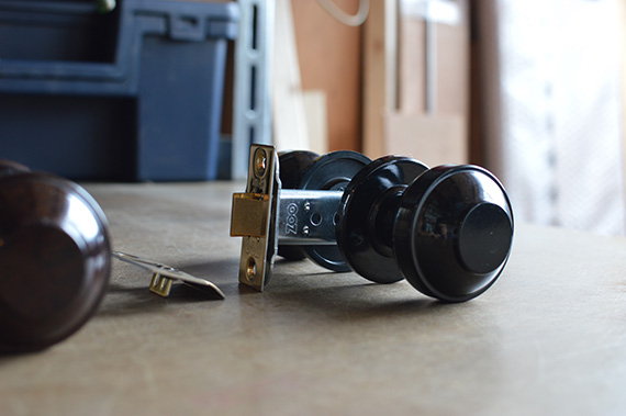 ベークライト製のドアノブ。1900年代のあらゆる年代のベーシックでアノニマスなデザインをベースに、復刻製造されているもの。イギリス製。