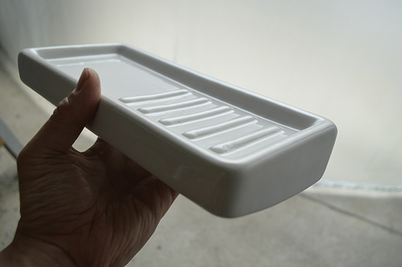 磁器製のシェルフ。小さい方は石鹸を置くスペースがございます。