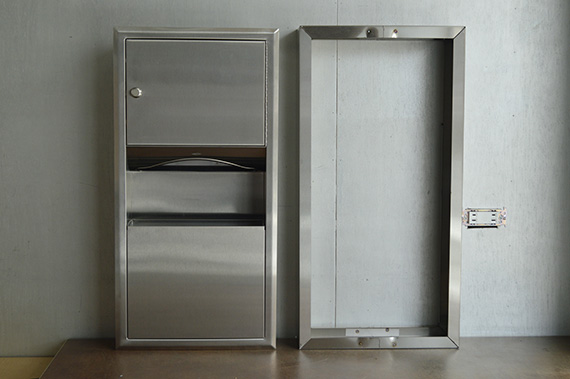 ペーパータオルディスペンサーとゴミ箱が一体となっています。