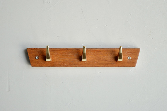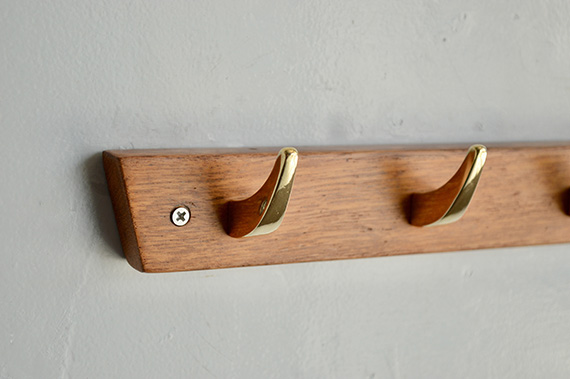 60年代くらいのスウェーデン製ウォールフック。チーク材のベースの上に真鍮製フックが備わっています。