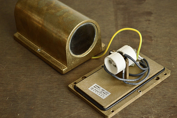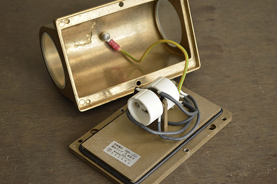 防水仕様のウォールランプ。上下方向に光を放射します。真鍮無垢の重厚感が特徴です。