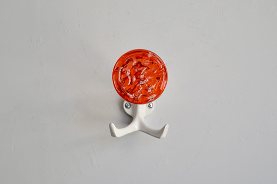 60~70年代の大きなコートフック。なんといっても赤い樹脂製ディスクが良いアクセントとなっています。