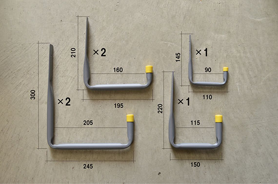 何かと必要(?)な大ぶりなフックのセット。艶消しグレーと黄色のキャップの色の組み合わせが良いですね。